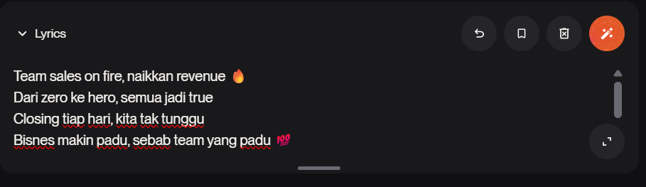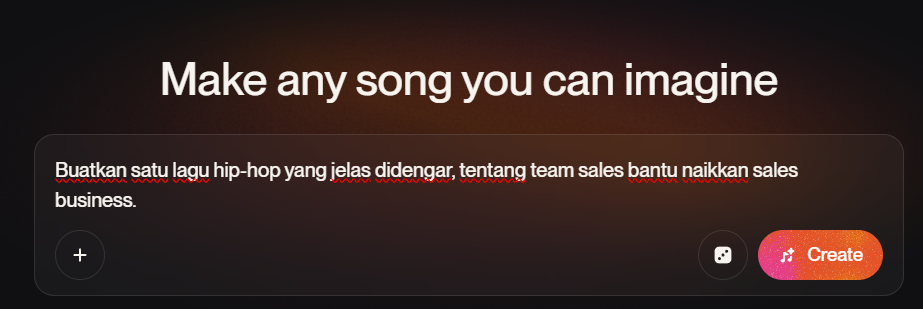 “Buatkan satu lagu hip-hop yang jelas didengar, tentang team sales bantu naikkan sales business.”