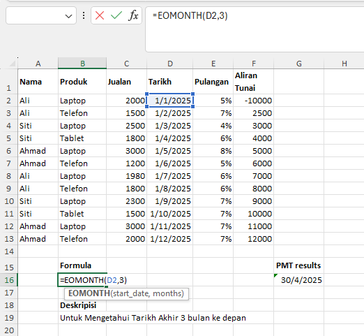 9. =EOMONTH() β Tarikh Akhir Bulan