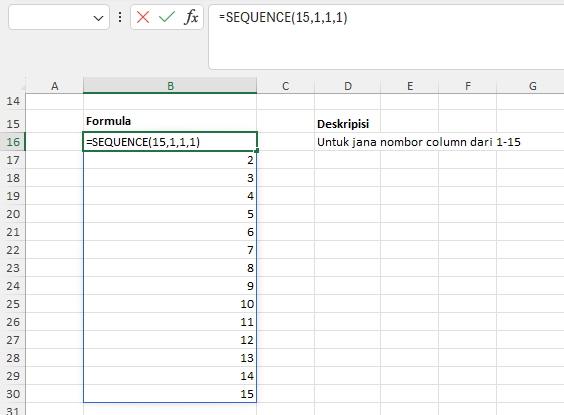 10. =SEQUENCE() β Jana Senarai Dinamik