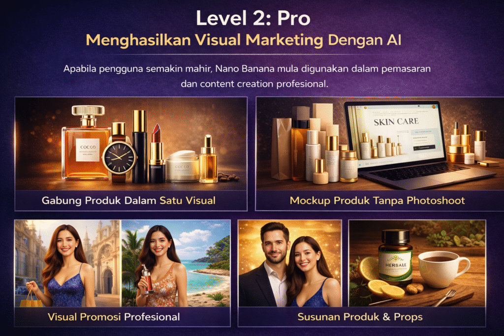 Apabila pengguna semakin mahir, penggunaan Nano Banana mula digunakan dalam bidang pemasaran dan content creation profesional.