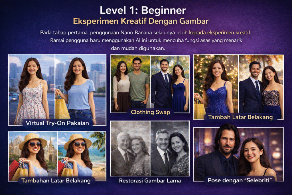 Pada tahap pertama, penggunaan Nano Banana biasanya lebih kepada eksperimen kreatif. Ramai pengguna baru menggunakan AI ini untuk mencuba fungsi asas yang menarik dan mudah digunakan.