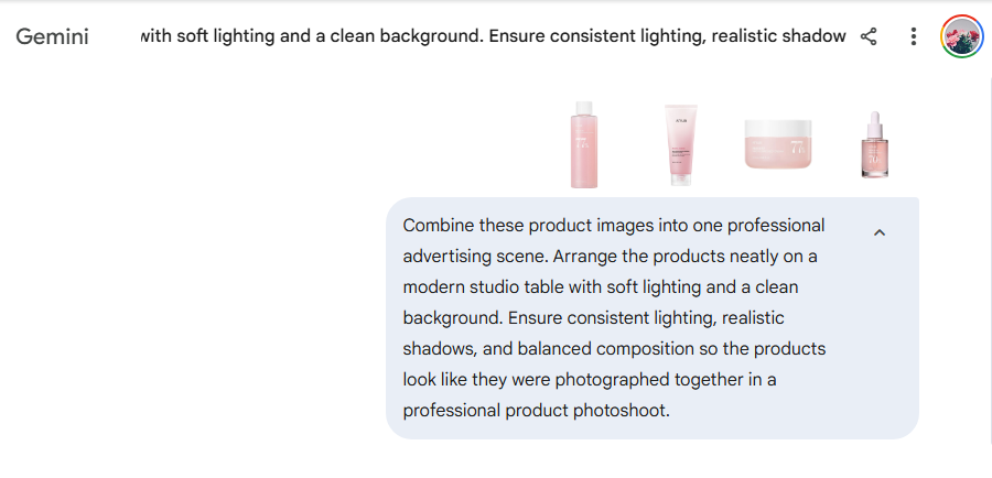 Contoh Penggunaan Level 2: Pro (Menggabungkan beberapa gambar produk menjadi satu visual iklan)